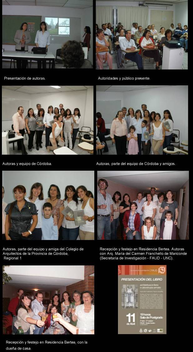 La presentación fue organizada por la Secretaría de Investigación de la FAUD. UNC y contó con numerosa presencia de docente y público que siguió con interés la exposición de las autoras, culminando con un brindis a cargo de las autoridades de la casa, Sra. Vice Decana FAUD. UNC. arq. Elvira Fernández y Sra. Secretaria de Investigación, Arq. María del Carmen Franchello de Mariconde.